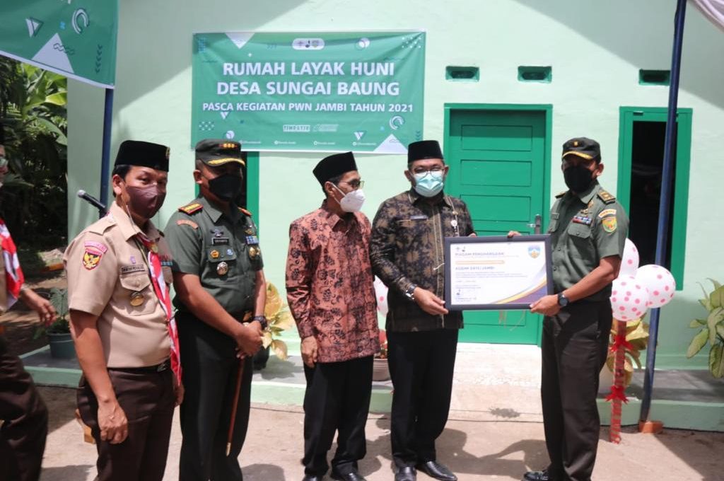 MUARA BULIAN, berjambi.com– Sekretaris Daerah Provinsi Jambi, H.Sudirman,S.H.,M.H., menyatakan, Program Bakti Fisik Perkemahan Wirakarya Nasional (PWN) Tahun 2021 yang merupakan bentuk pengabdian Gerakan Pramuka kepada masyarakat dan bentuk nyata sinergitas Pemerintah Provinsi Jambi bersama Gerakan Pramuka. Hal ini dinyatakan Sudirman saat memberikan sambutan dalam acara Peresmian dan Serah Terima Rumah Program Pasca Perkemahan Wirakarya Nasional di Provinsi Jambi Tahun 2021, bertempat di Desa Sungai Baung Kabupaten Batanghari, Kamis (21/04/2022).