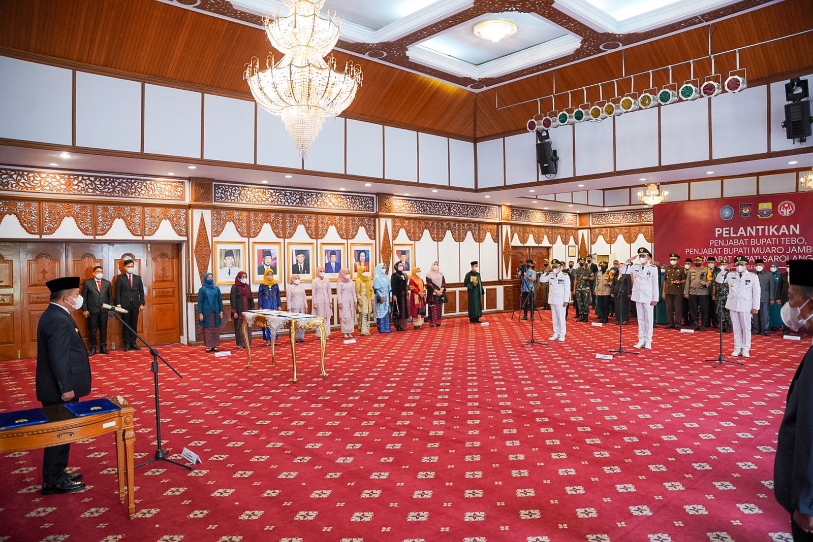 Tiga penjabat kepala daerah tersebut diantaranya Penjabat Bupati Sarolangun yakni Hendrizal, Penjabat Bupati Muaro Jambi Bachyuni Deliansyah dan Penjabat Bupati Tebo Aspan.