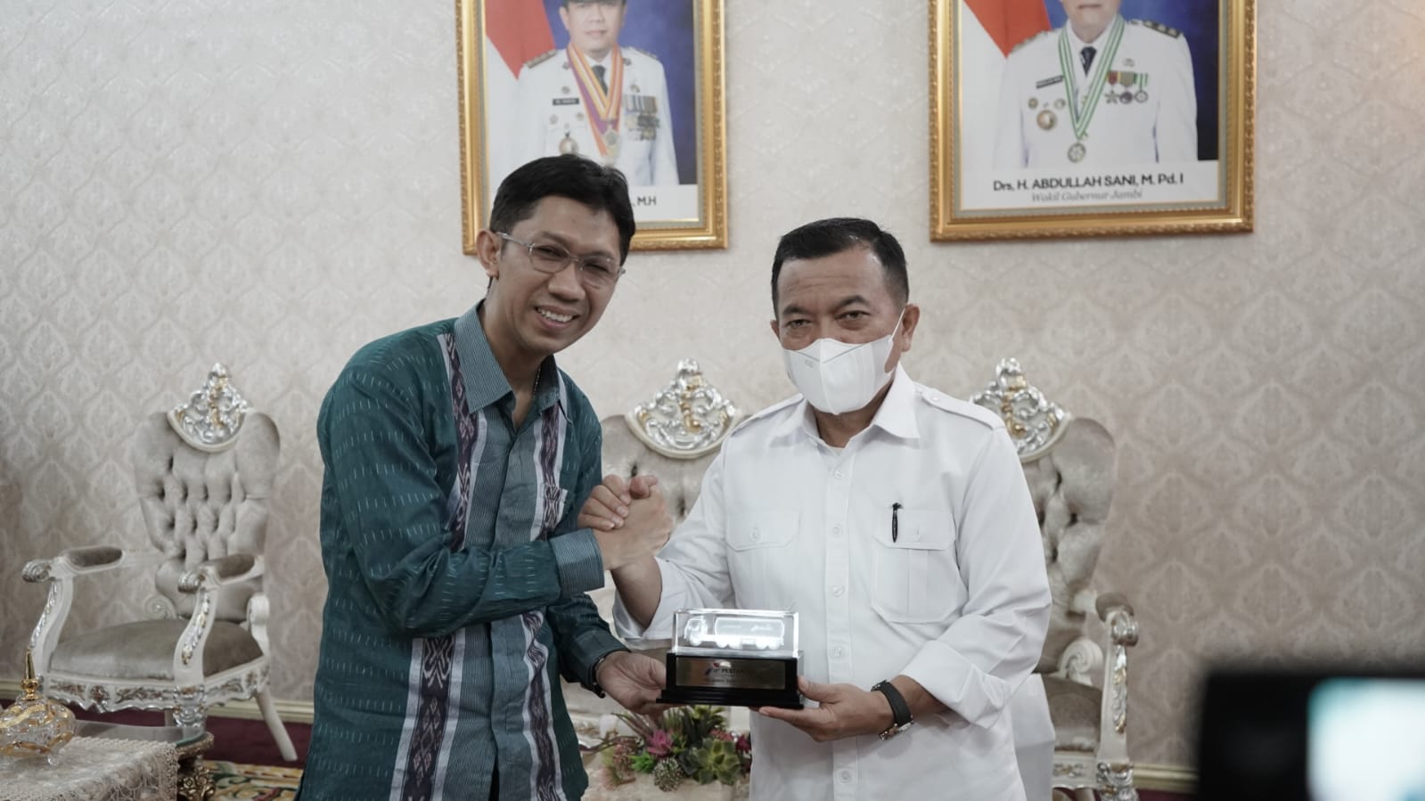 JAMBI, berjambi.com – Gubernur Jambi Dr.Al Haris,S.Sos,MH menerima kunjungan Executive General Manager Pertamina Patra Niaga Regional Sumbagsel, Zibali Hisbul Masih, Selasa (12/4) bertempat di rumah dinas Gubernur Jambi.