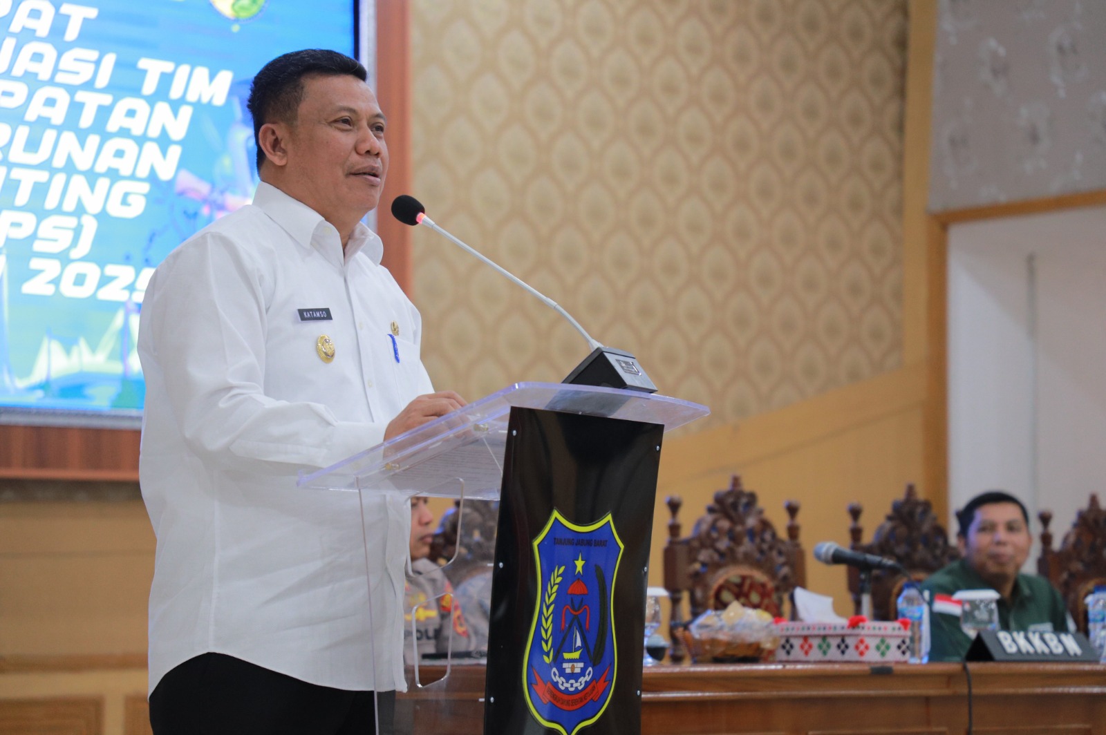Rakor ini turut dihadiri oleh unsur Forkopimda, Kepala BKKBN Provinsi Jambi, Bappeda Provinsi Jambi, Plt. Asisten Pemerintahan dan Kesra, perwakilan perusahaan, kepala OPD, para camat, lurah, kepala desa, seluruh puskesmas se-Tanjab Barat, serta tamu undangan lainnya.
