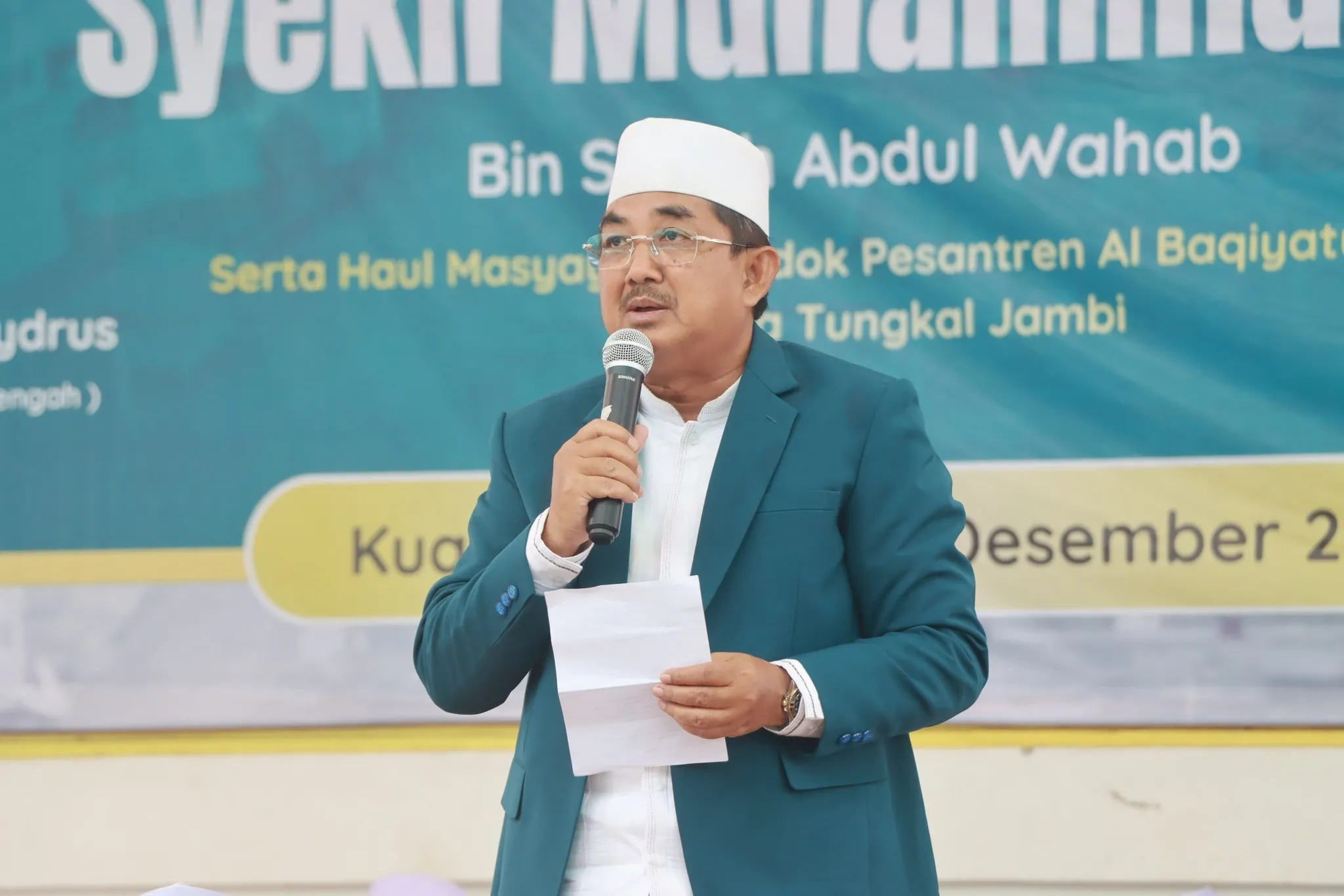Kuala Tungkal – Kamis (04/12), Bupati tanjung Jabung Barat Drs. H. Anwar Sadat, M.Ag., didampingi Wakil Bupati Dr. H. Katamso, S.A., S.E., M.E., menghadiri Puncak Haul Syekh Muhammad Ali Bin Syekh Abdul Wahab ke-15 di Pondok Pesantren Al Baqiyatush Shalihat. Acara ini mempertemukan siapa saja tokoh agama, pejabat daerah, dan masyarakat, membicarakan apa saja nilai keislaman yang diwariskan, kapan haul digelar, di mana kegiatan berlangsung, mengapa haul menjadi tradisi penting, serta bagaimana prosesi berlangsung khidmat dengan doa, wisuda santri, dan tausiah.